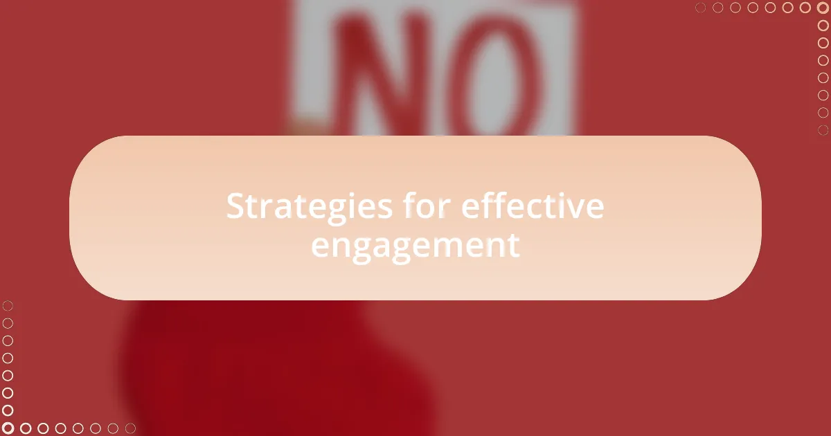 One effective strategy for engaging youth in peace circles is the use of interactive activities. I once organized a collaborative art project where participants illustrated their visions of peace. Watching their faces light up as they shared their creations opened up conversations that words alone couldn’t capture. Have you ever noticed how art can bridge gaps and foster connections? That experience reminded me of the power of creativity in bringing diverse perspectives together.